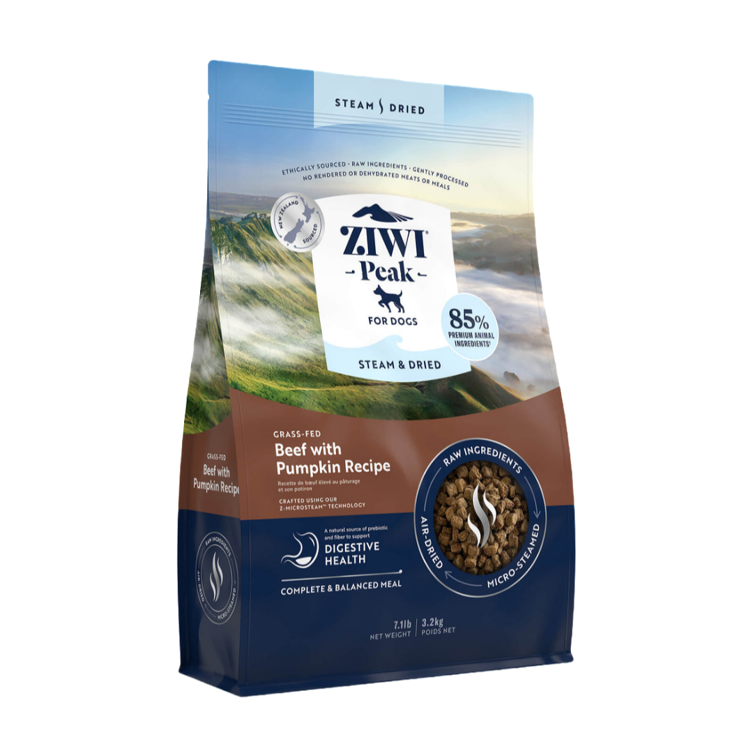 牛肉,牛肺,牛肚,牛肝,牛心,牛血漿,牛脾臟,牛骨 (葡萄糖胺及硫酸軟骨素來源) ,卵磷脂,牛脂肪,綠色豌豆乾,綠色扁豆乾,南瓜,牛軟骨,南瓜乾,乾蘋果蓉,天然香料,藜麥乾,魚油,蕪菁甘藍,胡蘿蔔,甜菜,礦物質(磷酸氫二鉀,硫酸鎂,氨基酸鋅復合物,氨基酸鐵復合物,胺基酸銅復合物,硒酵母,氨基酸錳復合物),乾菊苣根,海帶乾,膽鹼氯化物,鹽,天然防腐 (檸檬酸 混合生育酚),維他命 (維他命-E補充,硫胺素 單硝酸鹽,泛酸鈣,核黃素,吡哆醇鹽酸鹽 (維他命B6),維他命-D3補充劑,葉酸),迷迭香萃取物。